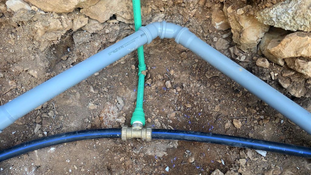 Sonntag habe ich das Stadtwasser mit unserem System verbunden und auf Stadtwasser umgestellt. Ein kleiner Abstieg in die Zisterne zeigte: Sie braucht dringend eine Reinigung und einen besseren Zulauf. Aber das hat noch etwas Zeit – zuerst muss die Solaranlage fertig werden.