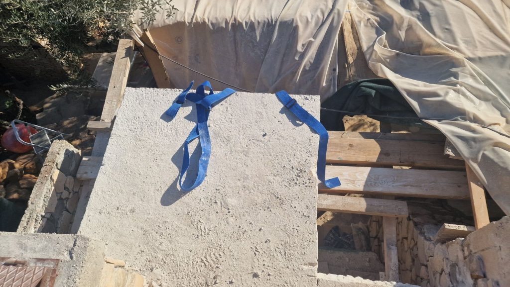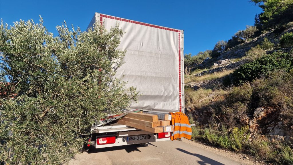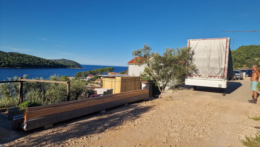 Da es dann doch nicht geregnet hatte – und die Decke in Mikulina Luka in der Küche noch halb offen war – bin ich am Mittwoch zum Kutak . Dort habe ich die beiden restlichen Betonteile abgeschnitten und die Plane neu gespannt, damit unsere Küche nicht wieder so nass wird.